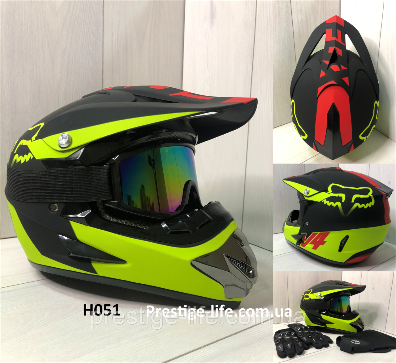 Мотошолом Ендуро H051S для мотокросу або квадроцикла + КОМПЛЕКТ у Подарунок (Окуляри, Рукавички, Маска)